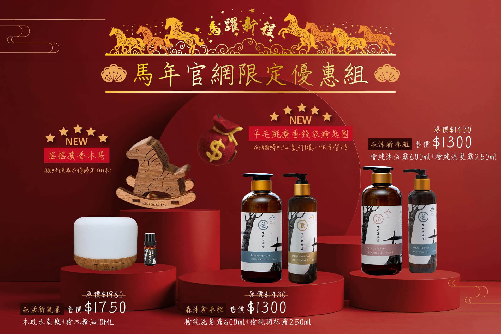 馬年新品【搖搖擴香木馬】檜木精油擴香禮盒