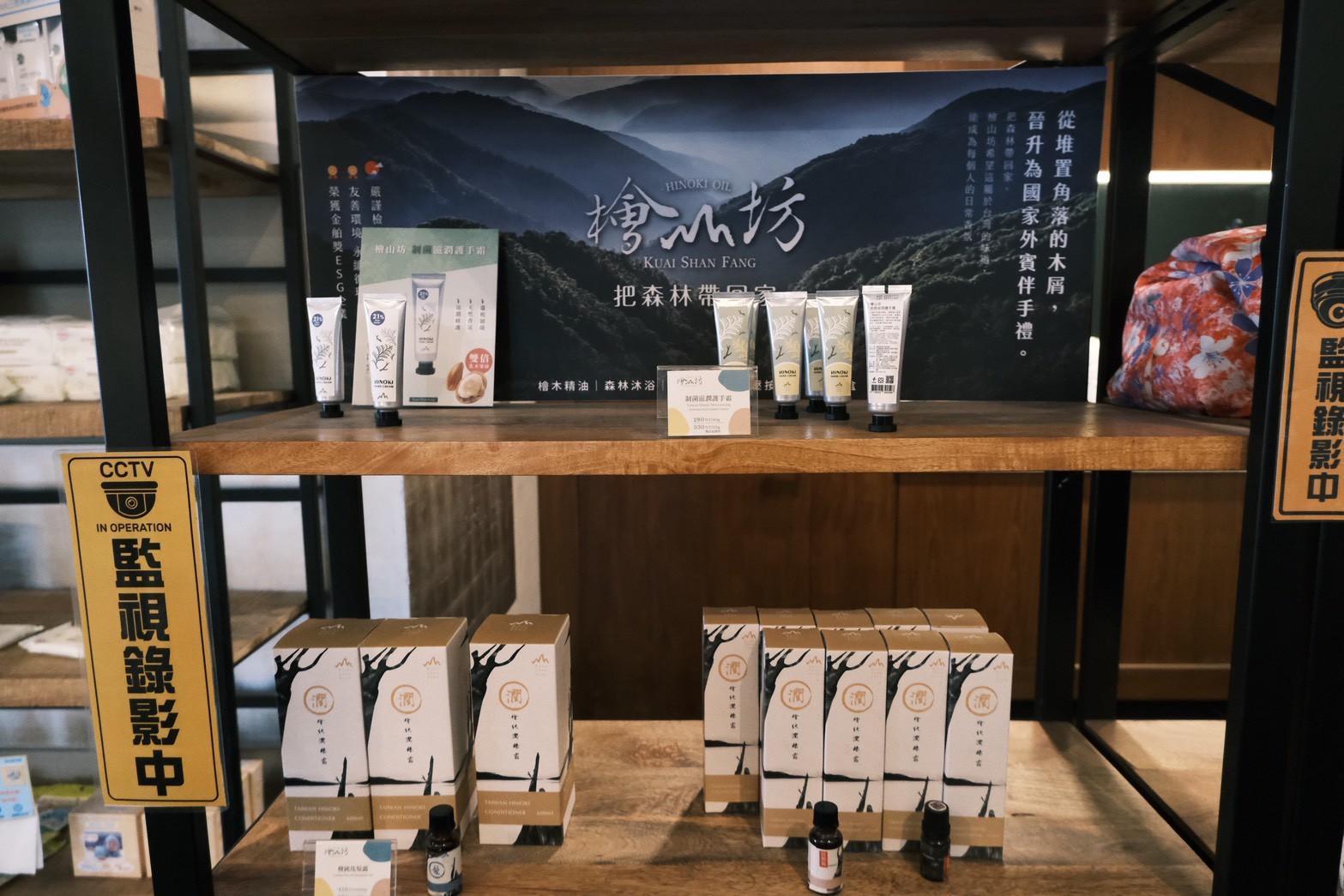 「把森林帶回家」是檜山坊不變的初衷。 退房時,如果捨不得這股療癒的木頭香味,大廳旁的選品展售區可以讓你直接把房內使用的同款備品帶回家。不論是自己用還是送禮,都能讓這份森林感動,在日常生活中延續下去。