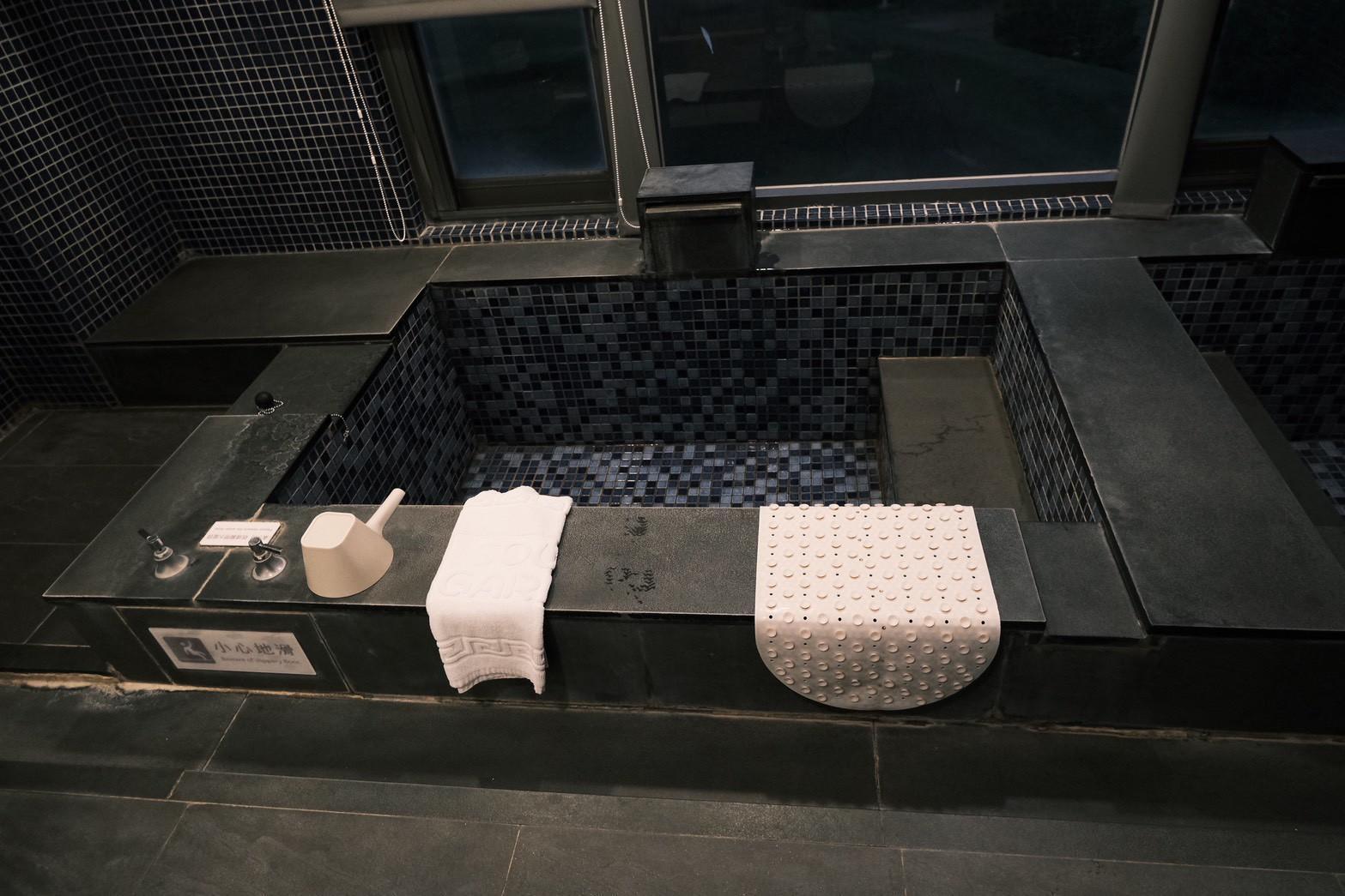 房間內就擁有超大的私人浴池,將浴池放滿溫泉水,可自備精油滴入,看著窗外的景色,這才是真正的度假!飯店著名的碳酸氫鈉泉(美人湯)能滋潤肌膚,搭配檜木的森林芬多精,身心壓力瞬間歸零。