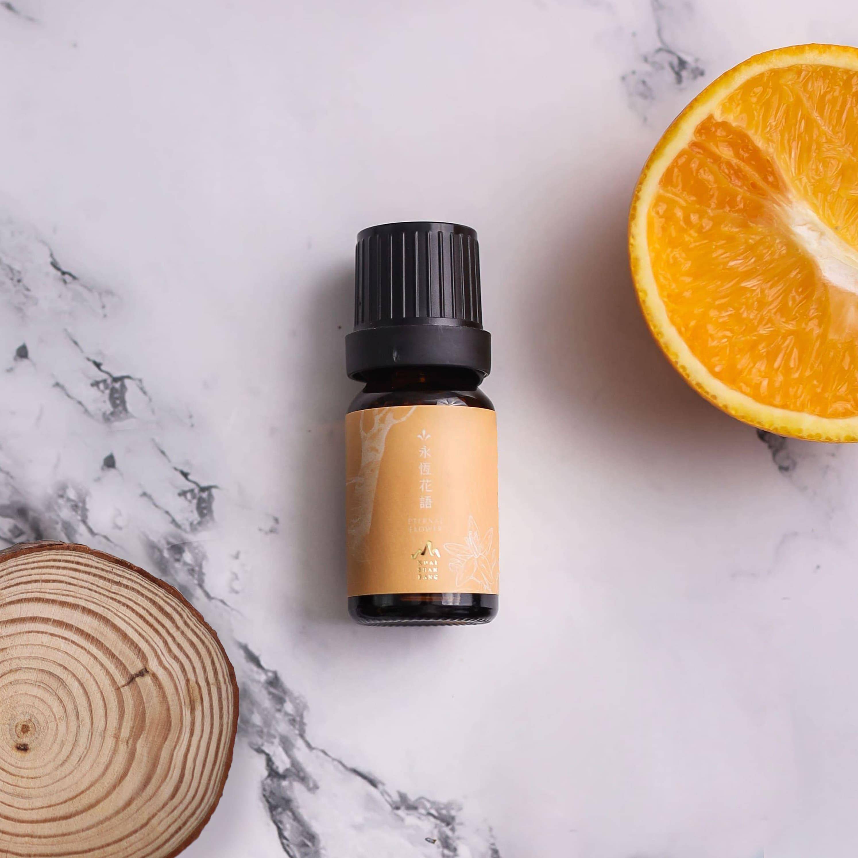 永恆花語複方精油,含有甜橙(果香)及岩蘭草(草香),補充愛情、財富運