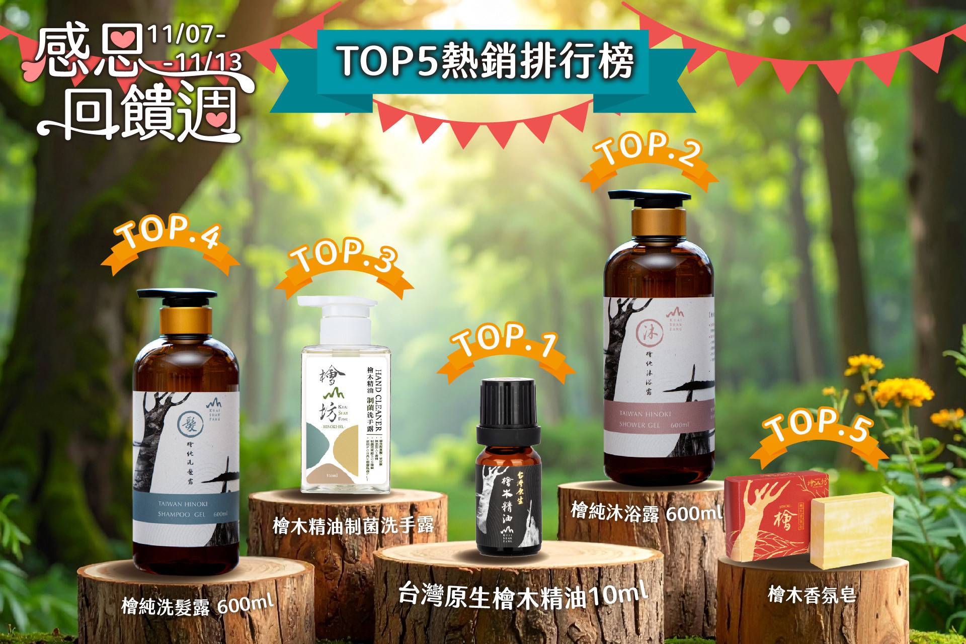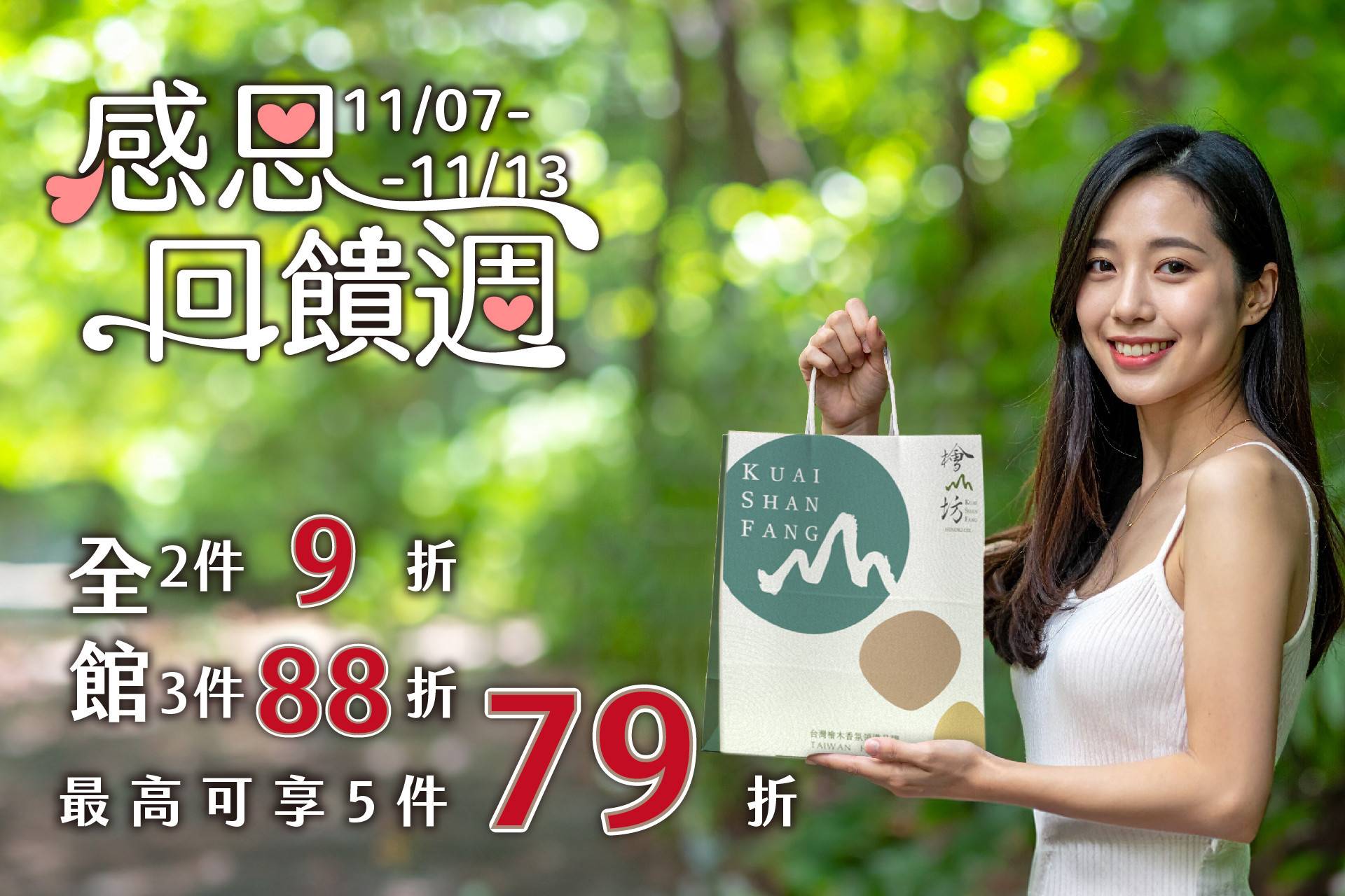「感恩回饋週」檜山坊全館2件9折、3件88折、5件79折,把檜木森林帶回家