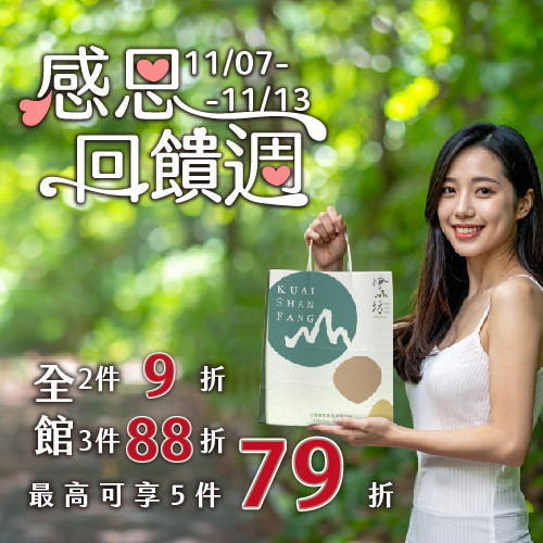 「感恩回饋週」全館2件9折、3件88折、5件79折