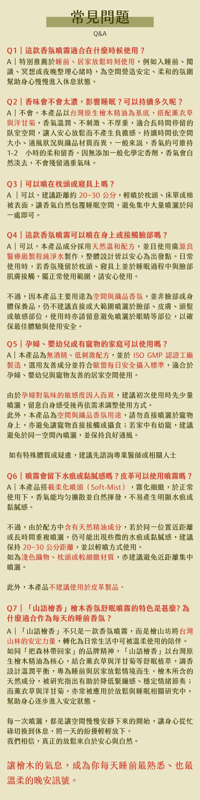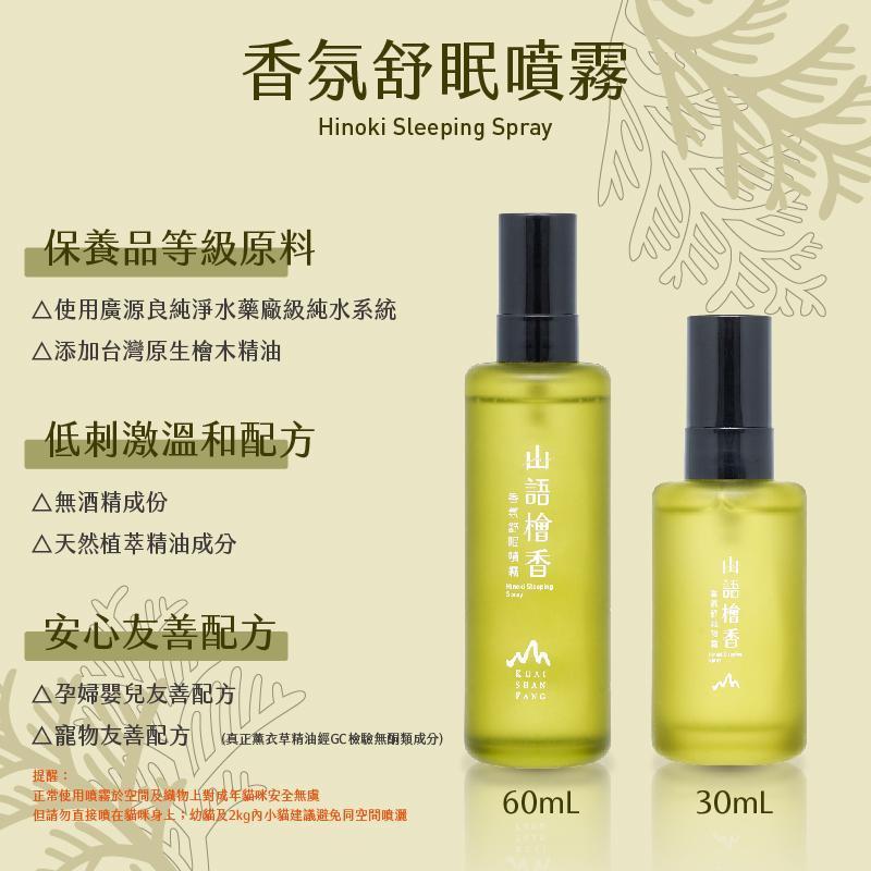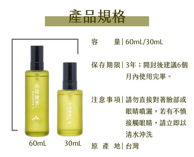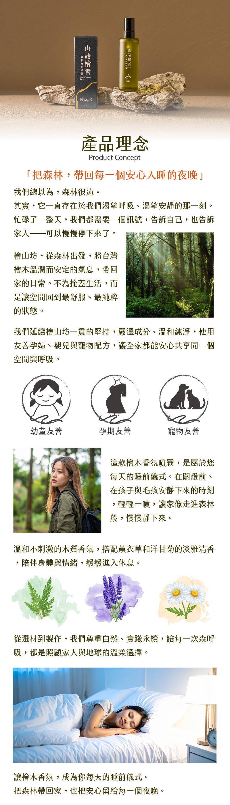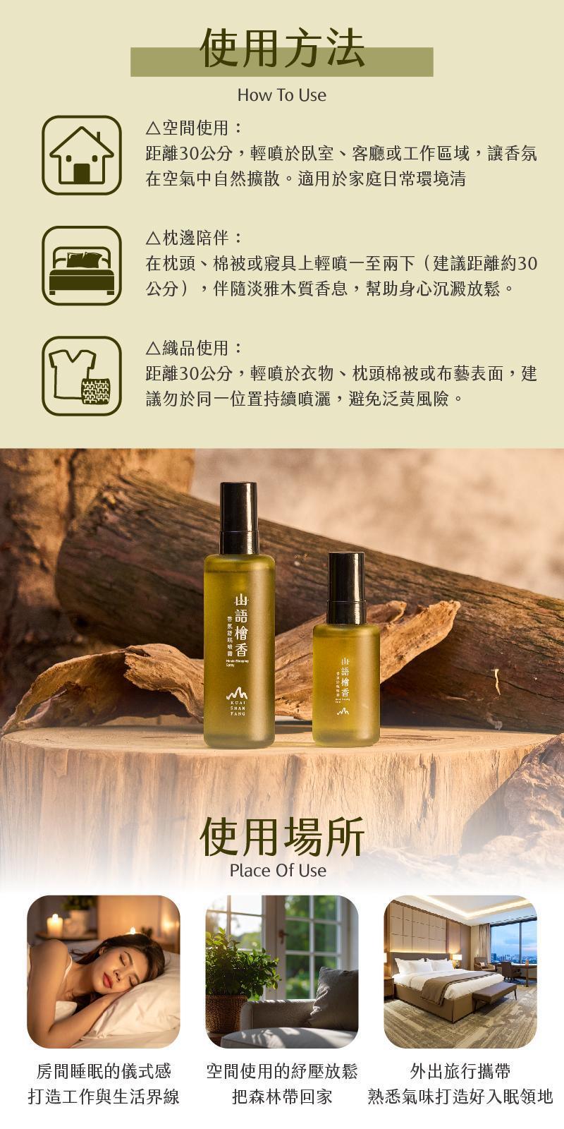 「山語檜香香氛舒眠噴霧」以溫潤沉靜的檜木香氣為基調,