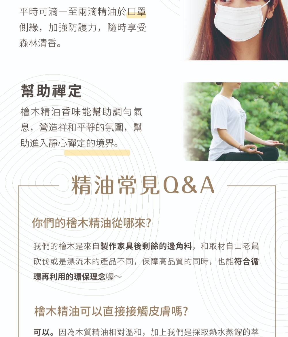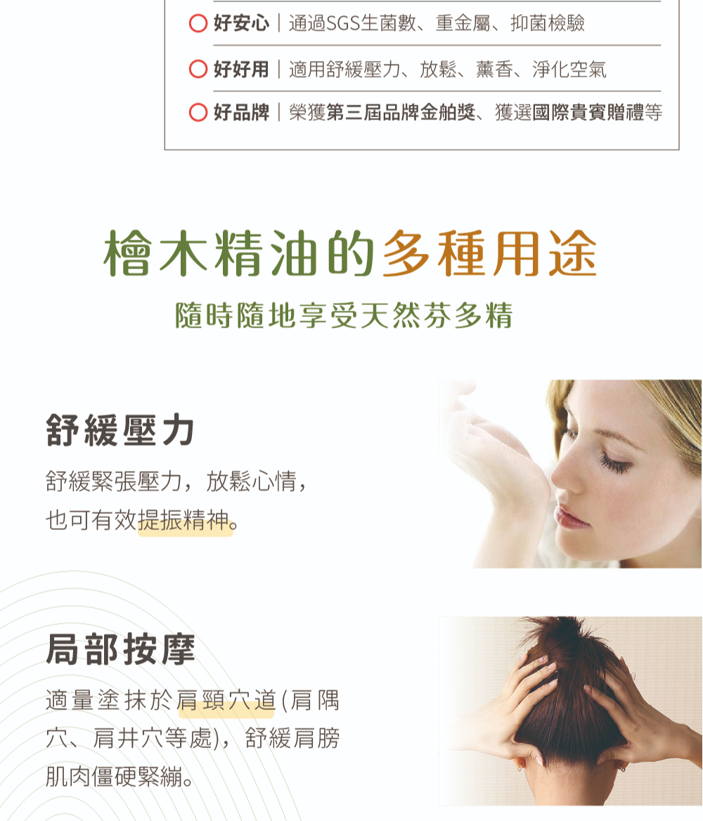 搭配檜木精油,散發沉穩木質氣息,療癒安心不刺鼻